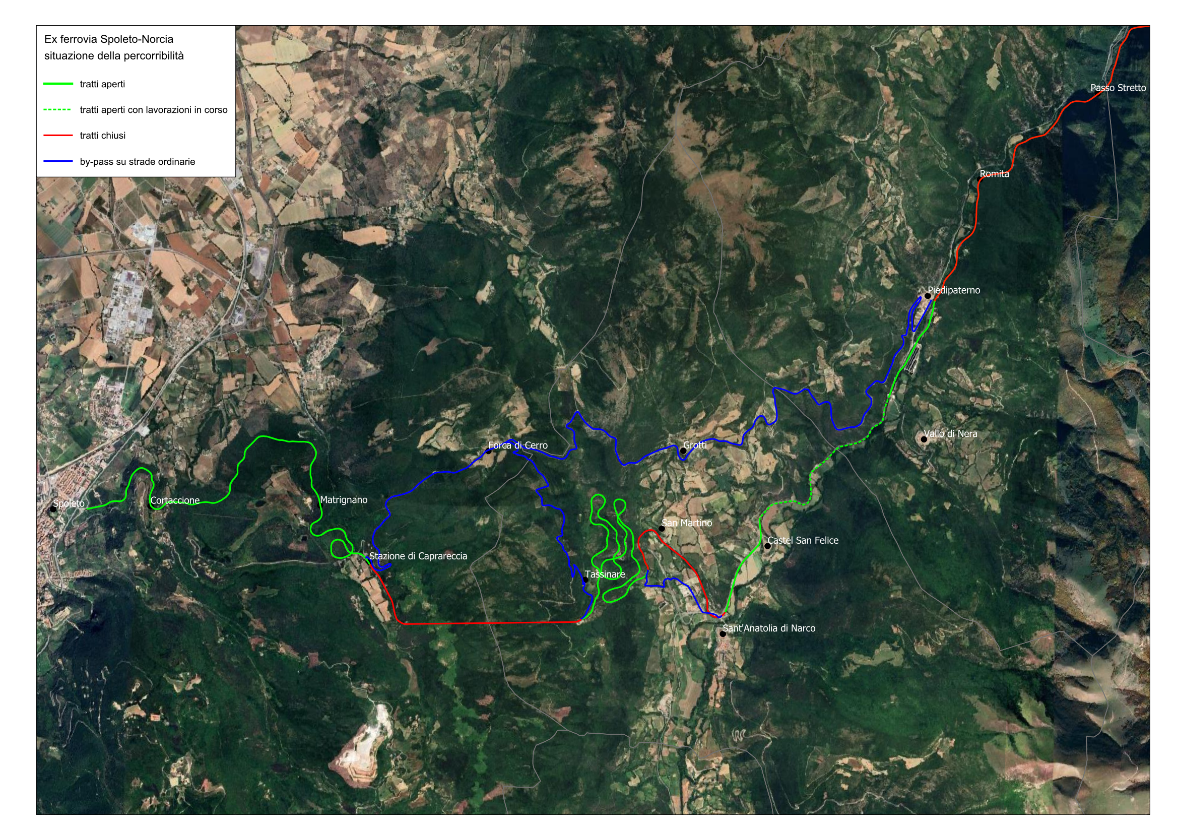 Ex Ferrovia Spoleto-Norcia: indicazione dei tratti percorribili. Contenuti aggiornati.